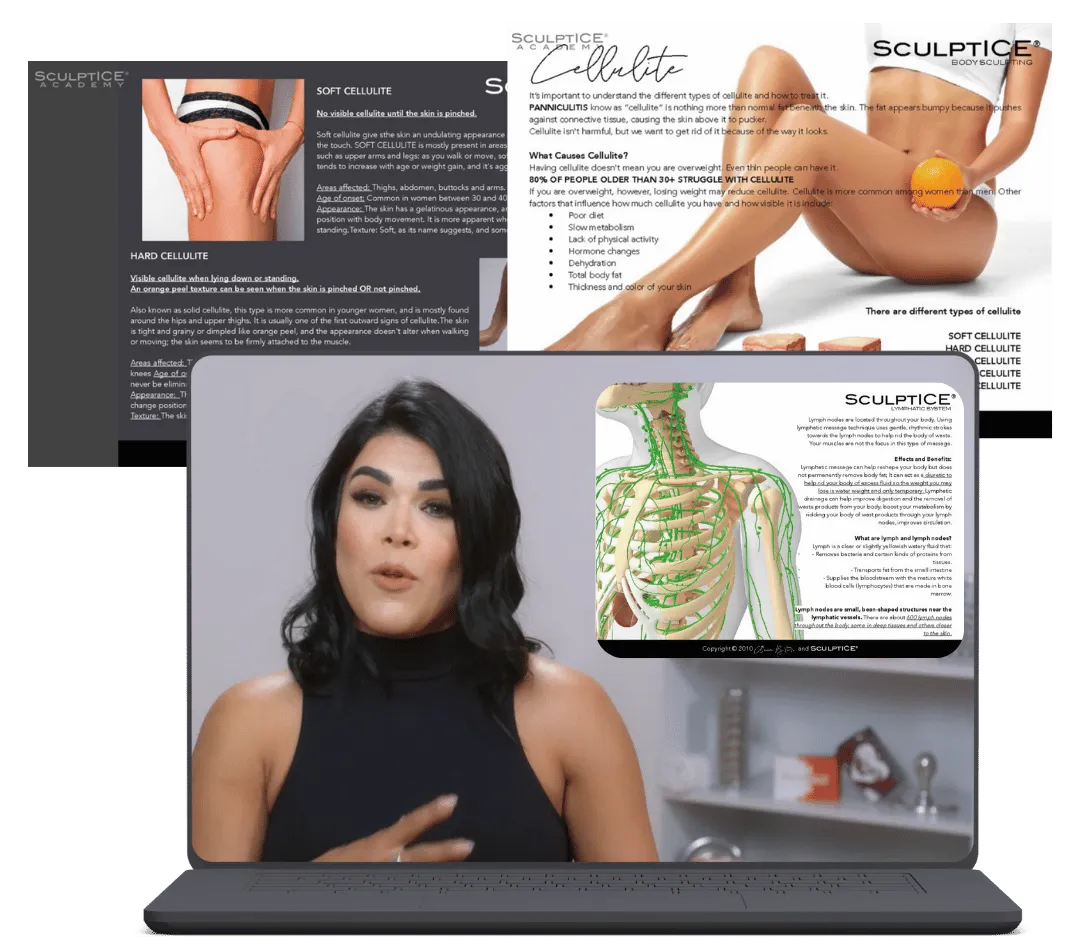 SculptICE® enseña técnicas manuales de escultura corporal no invasiva utilizando terapia con hielo, herramientas metálicas y de madera — con protocolos paso a paso diseñados para implementación real.